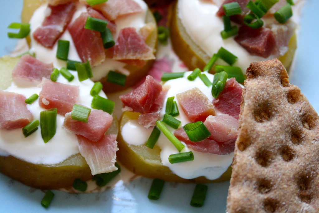 Olivia synes sild er merkelige greier, og selv om jeg vanligvis ikke er særlig ettergivende når det dukker opp sutrete preferanser i matveien, så finnes det visse matvarer jeg gir amnesti for. Sild er en av dem. Og når vi nå dessuten hadde innmari god spekeskinke, var vi plutselig flere enn barnet som mente at poteten burde ris av annet enn bare fisk.