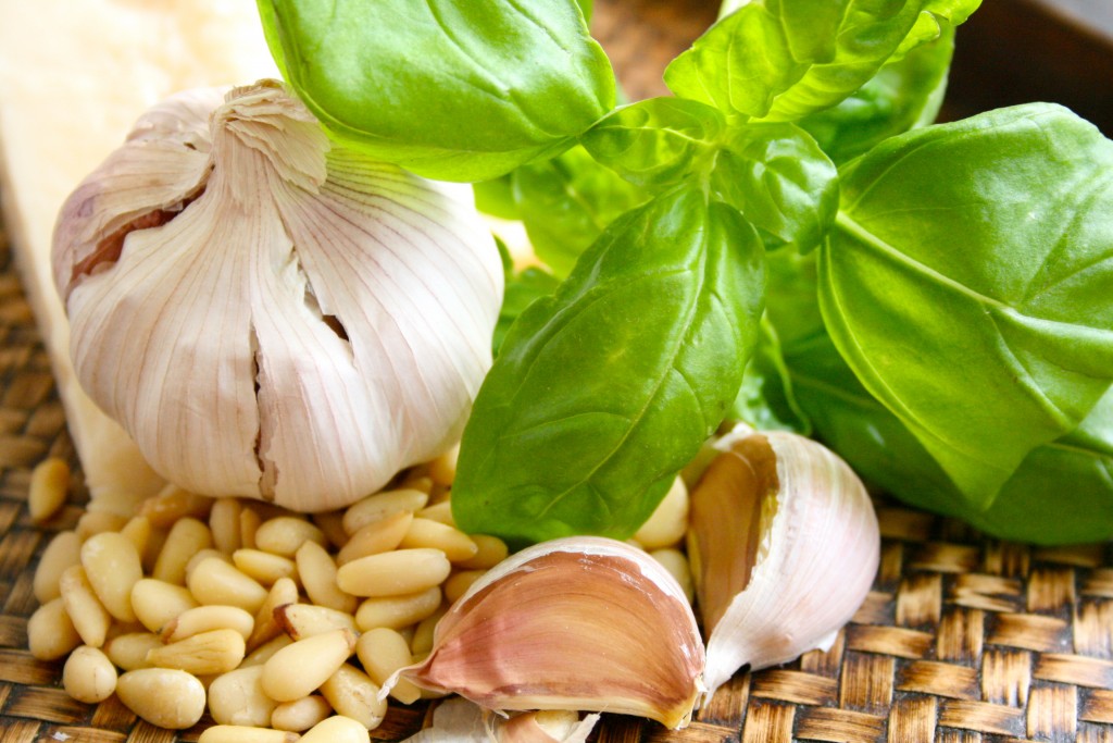 * 2 hvitløksfedd (hvis jeg laget pesto til pasta, ville jeg bare brukt 1 fedd)