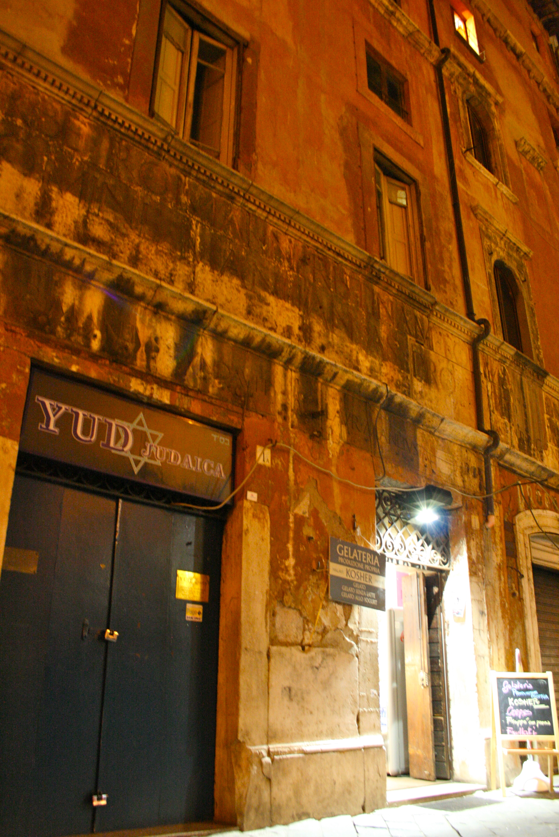 I dag er fremdeles mange av de små leilightene i Il Ghetto bebodd av jødiske familier, synagogen som ble bygget i 1904 ruver fantastisk på Lungotevere, og det er flust av caféer og restauranetr som selger tradisjonell jødisk-romersk mat og koscher. Atmosfæren i de trange og mørke middelaldergatene er en helt annen enn bare et steinkast unna, i gatene som f.eks leder opp til Campo de Fiori.