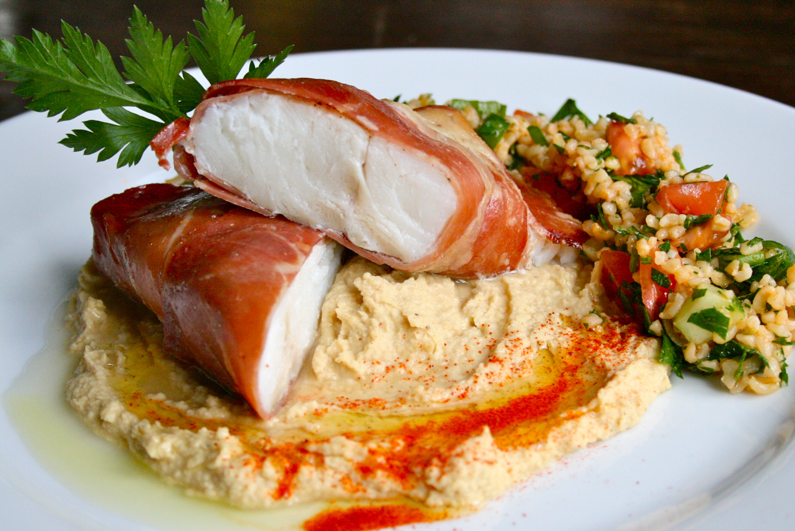 Når jeg bruker humus og bulgursalat som tilbehør, er det fordi jeg fikk innmari lyst på humus i dag. De gangene jeg får lyst på det, er det en lyst sterkere enn veldig mye annet som ikke er 100% syndig. Så tenkte jeg nok også at spekeskinka skulle få utfording av nye og eksotiske innslag, som på mange måter gjenspeiler store deler av nærmiljøet mitt her i Gamle Oslos innerste indre av det inderligste øst. Apropos dét, og apropos spekeskinke, så finnes det mange utrolig fine slaktere i mitt nabolag som jeg bruker daglig, men spekeskinke? Vel…Halal-gris er fremdeles et ukjent fenomen. Grønnsaksbutikkene derimot, hadde alt jeg trengte til tilbehøret.