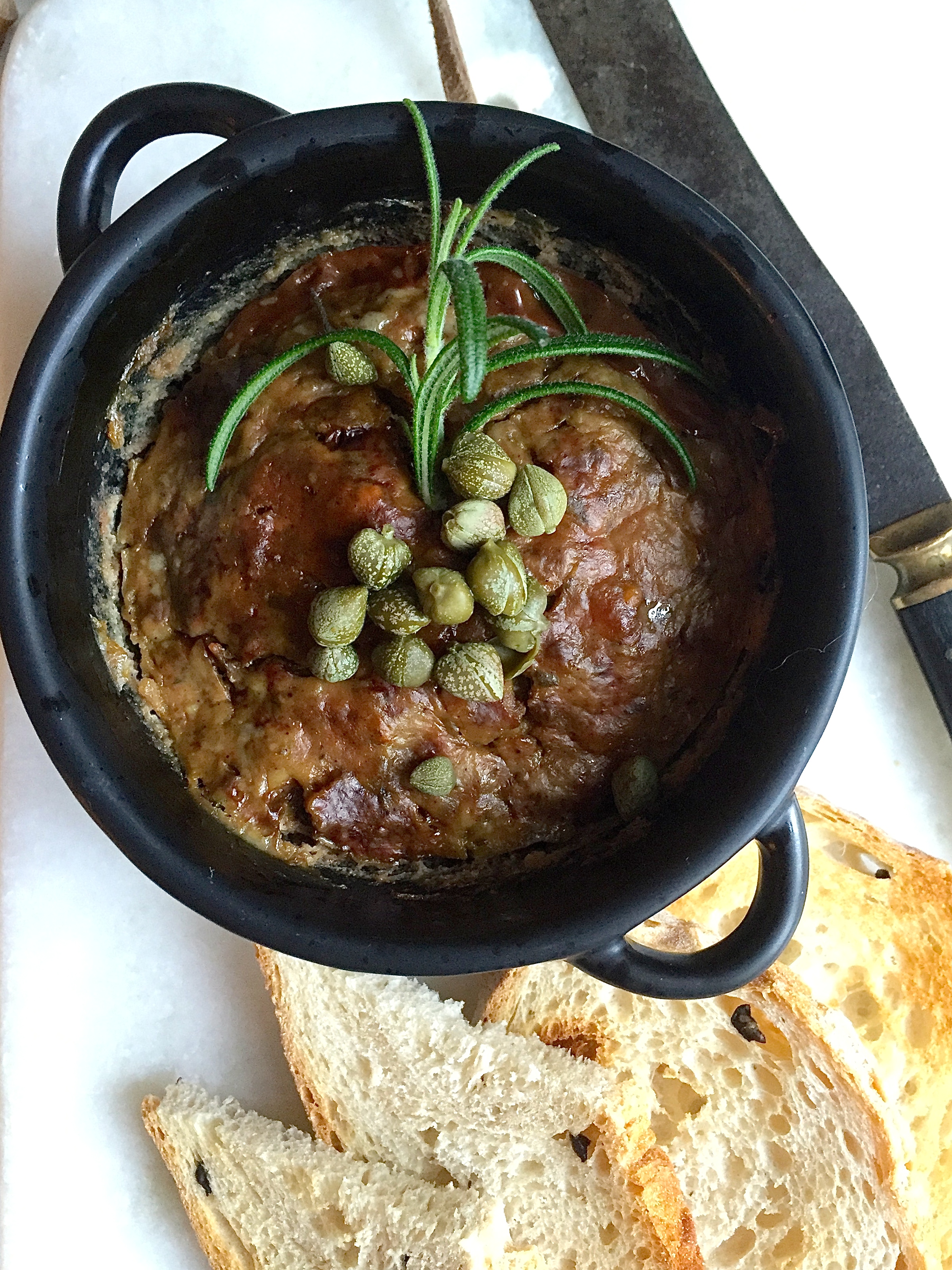 Uansett: den passer perfekt på julelunsjbordet eller til julefrokosten. Jeg hadde den på ristet olivenbrød, og det kan virkelig anbefales! Topp gjerne patéen med noen rødløkringer og kapers også.