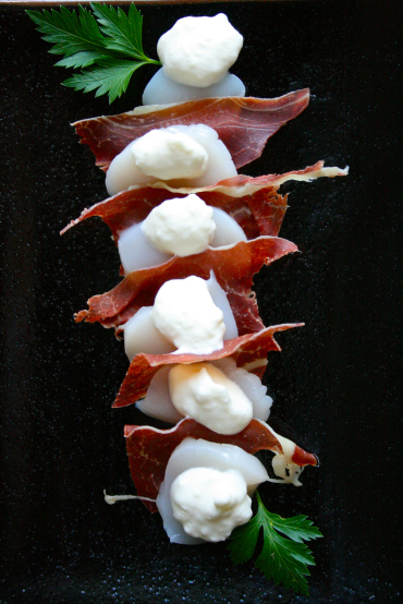2. Denne fjonge saken med kamskjell og spekeskinke i skjønn harmoni, har jeg faktisk vunnet en konkurranse med. Vel verdt å servere på den siste dagen i året! Enkle, rene og nordiske smaker.