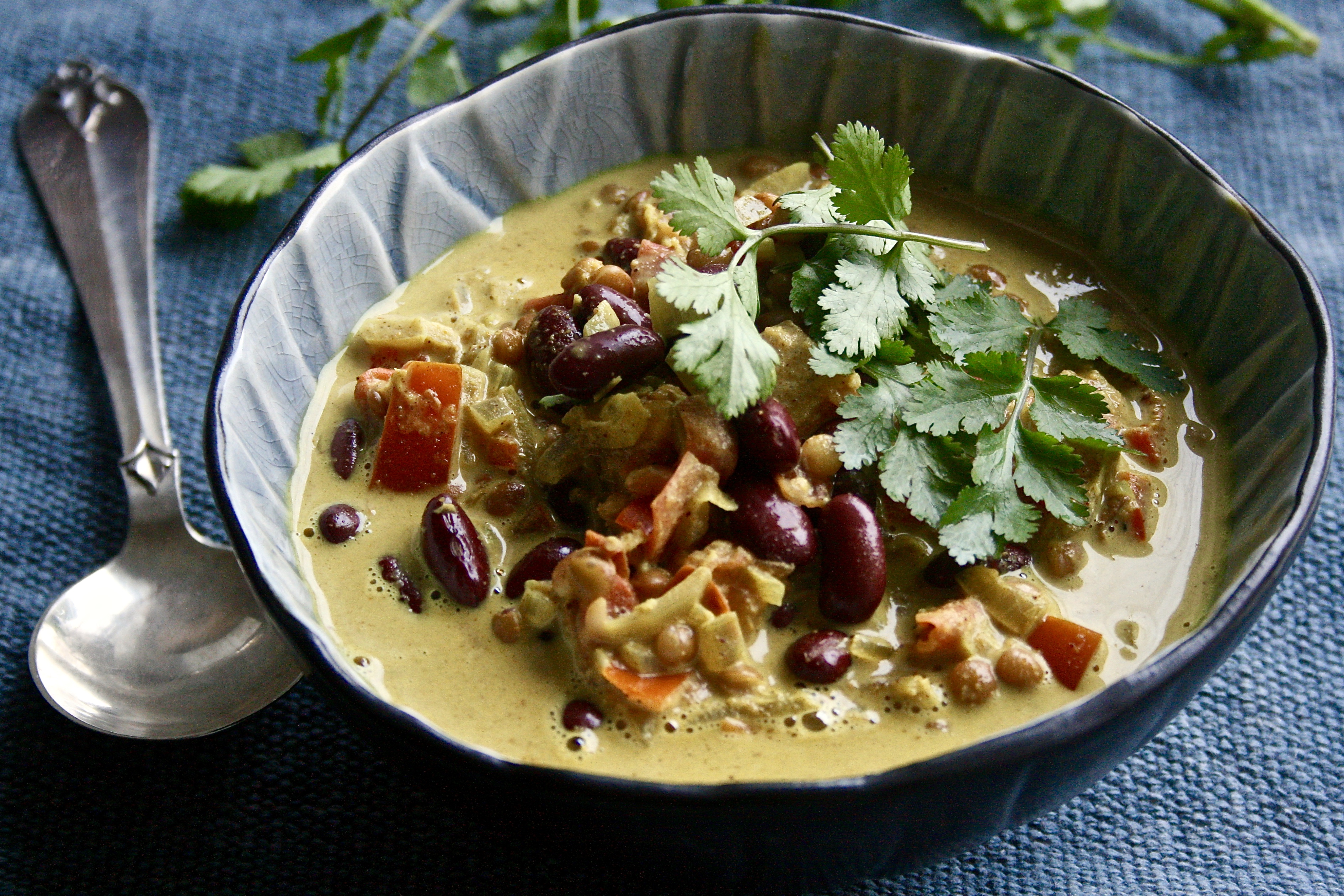 Skal du lage en curry med belgfrukter, har du disse i sausen de siste minuttene av koketiden så de blir gjennomvarme. Da mener jeg selvfølgelig belgfrukter som er ferdigkokte og møre.