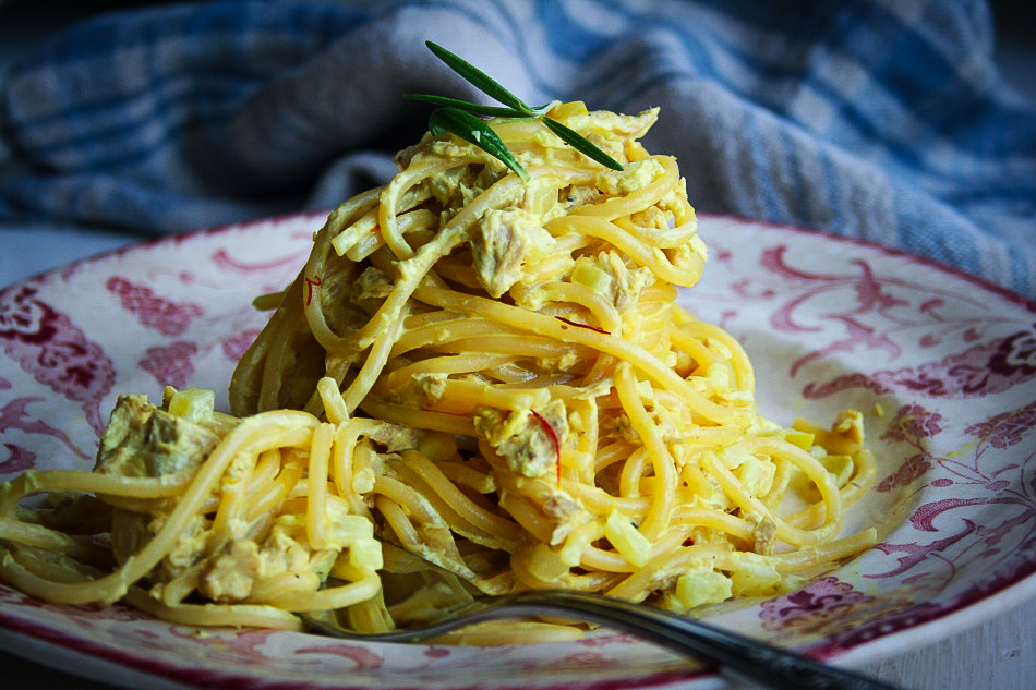 Pasta og tunfisk er to ting jeg alltid har i skapet. Billig og kjapp hverdagsmat. Hvis du ikke er glad i tunfisk, kan du selvfølgelig bruke annen fisk eller skalldyr. Sånn som denne digge varianten med krabbe.
