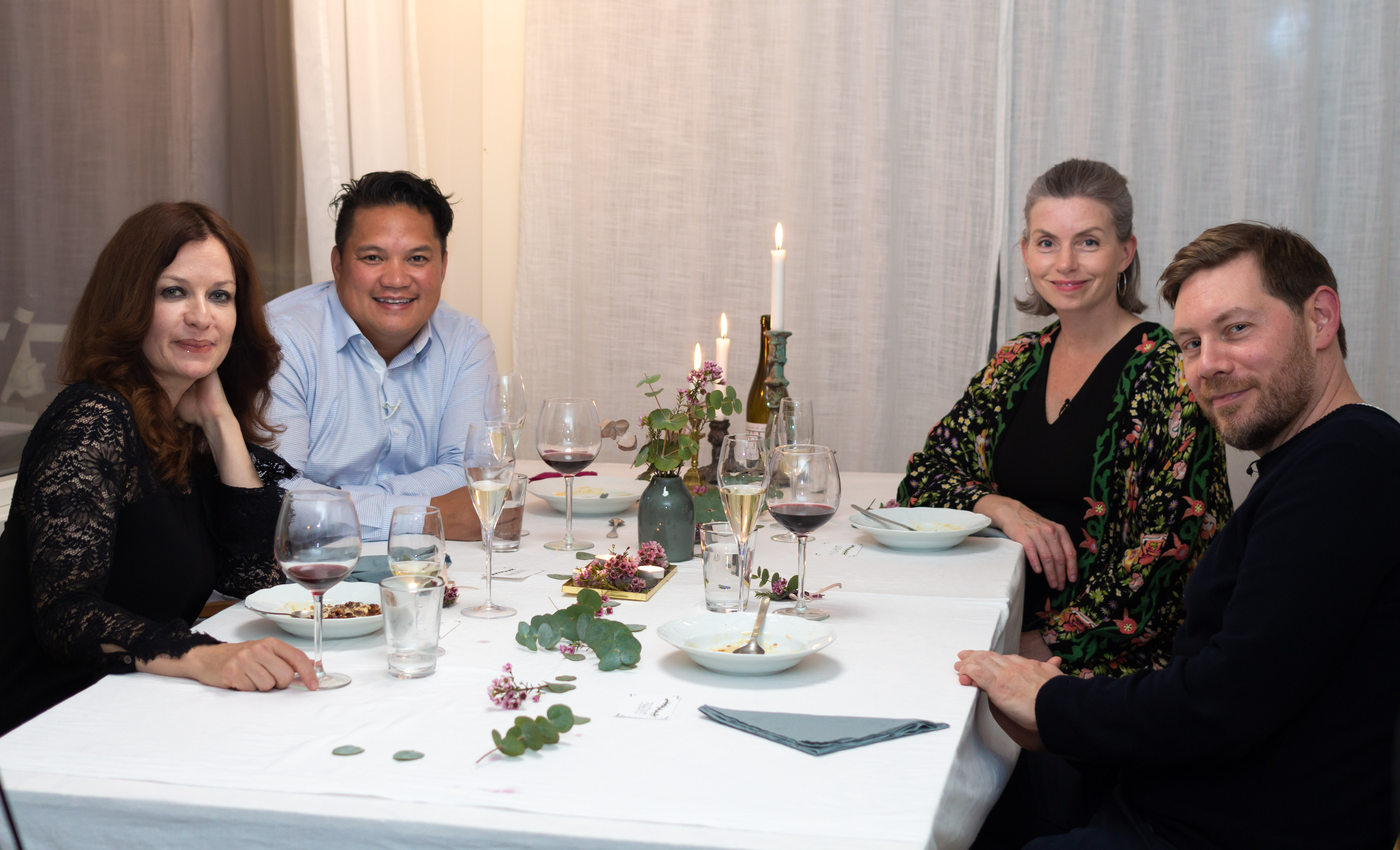 Endelig, her kommer det dere har etterspurt: hele menyen jeg serverte Jonathan, Monica og Sverre på 4-stjerners middag. Det var høst, regn og fargesprakende løv på trærne da vi gjorde opptakene, og råvarene er valgt ut på bakgrunn av sesongen vi befant oss i. Det vil si at det akkurat her vi befinner oss nå, i begynnelsen av mai, ikke er sesong for hverken norske epler eller lam. Det betyr ikke at maten ikke vil smake godt hvis du lager den nå (kanskje har du fjorårets lam i frysern…?), men jeg nevner det fordi jeg prøver så langt jeg kan å følge sesongene våre når jeg velger råvarer. Det er noe jeg er blitt mer og mer opptatt av med åra. Grå i håret og kjenner været på gikta og hva jeg putter i munnen.